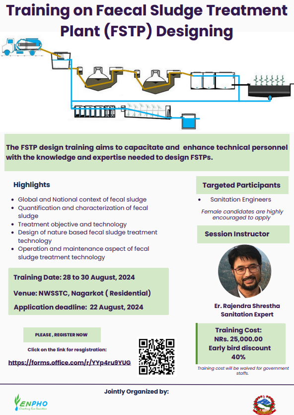 With the increment of urbanisation, the need for sewer and non-sewer sanitation infrastructures is also increasing. A properly designed Faecal Sludge Treatment Plant (FSTP), considering all the design parameters, can play a vital role in smooth operation in the long run and a capable designer is the basic requirement. Even designing knowledge is essential to evaluate the designs submitted by consulting agencies before taking it into action. This training will play a significant role in developing FSTP designers to meet the demand.