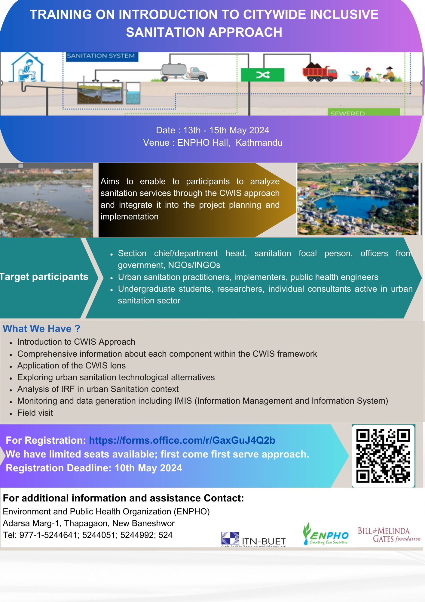 This is introductory training for those who are interested in urban sanitation issue and challenges. The training clarify the CWIS approach and develops a perspective to look through the CWIS lens while developing, implementing and evaluating urban sanitation projects.